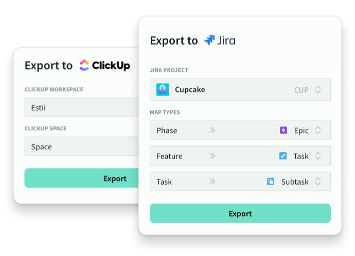Kick-off projects seamlessly. Export into Jira and other productivity tools