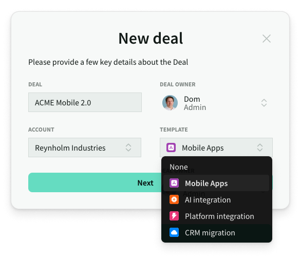 Turn around quotes faster with reusable deal templates and pre-packaged products and services.