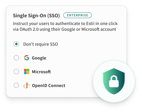 Estii's end-to-end security and privacy features include single sign-on (SSO), enterprise user permission controls, full 256 bit SSL encryption and much more.