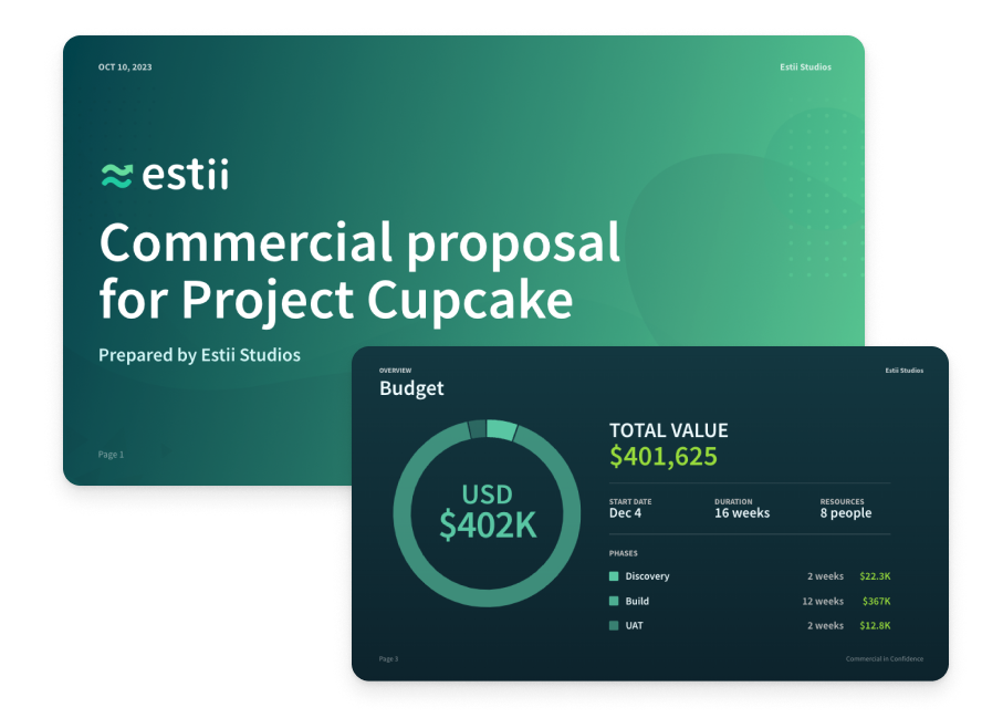 With Estii, Sales teams can iterate on scope, price and schedule without breaking a sweat (or a spreadsheet) to win more profitable business.