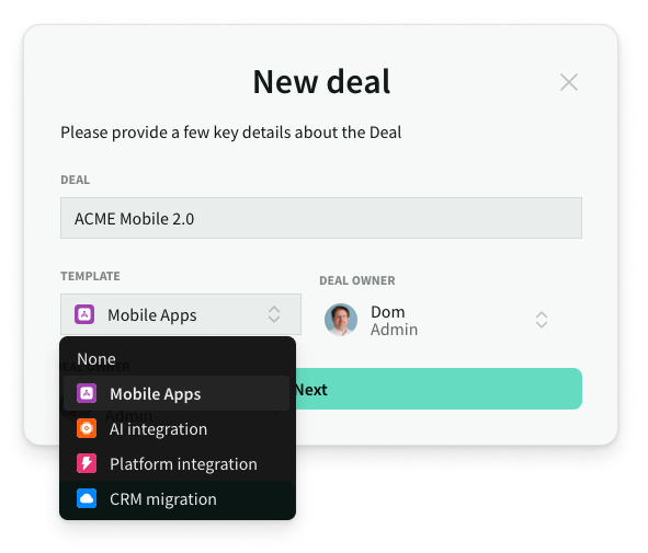 Turn frequently requested scope into deal templates that allow your team to quality and size new opportunities in minutes.
