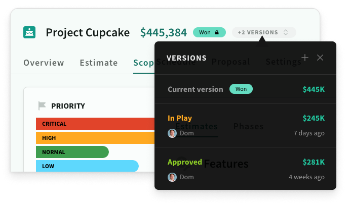Approve, negotiate and close deals faster, with real-time updates to scope, schedule and price that are driven by real data, not random hunches.